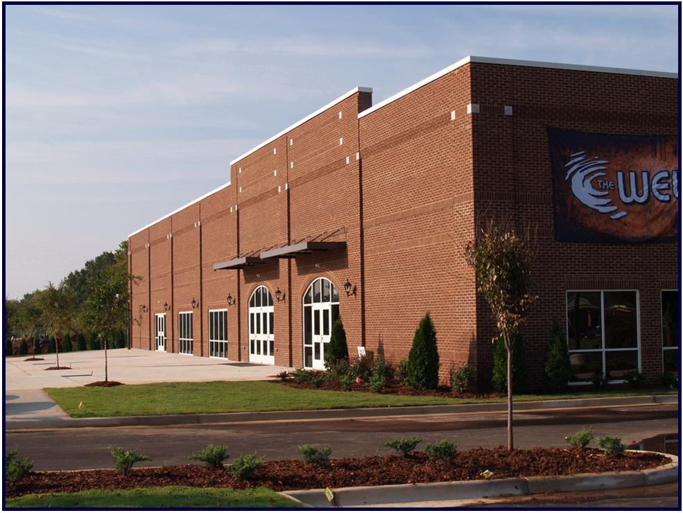 This unique concept involves a straight forward 16,000 sf single sloped metal building with 22 ft eave height. The main Youth Worship Room has exposed ceilings with painted round ductwork and pendent lighting. The Gathering Room, Game Room, and Café have 22 ft exposed ceilings with a 9 ft ceiling grid system underneath. The high eave height and open span of the metal building provided the architect with a clean slate to design the open warehouse feel the owner wanted.