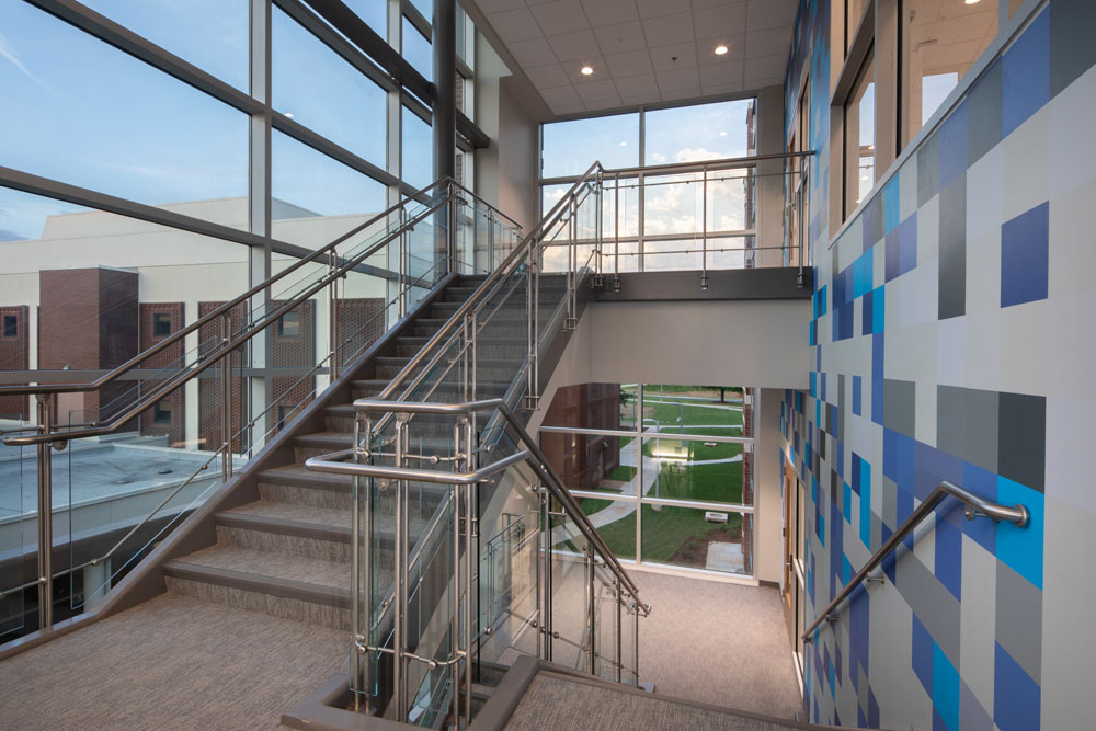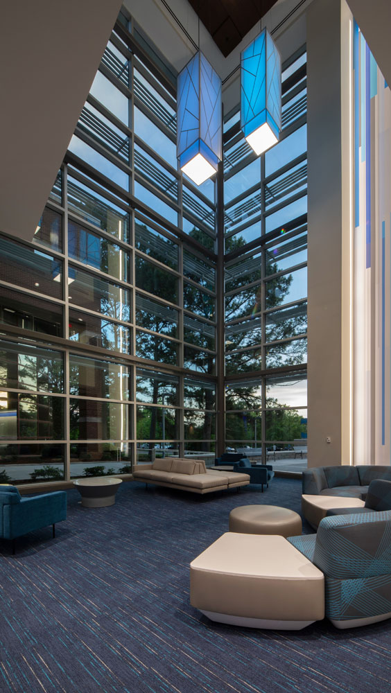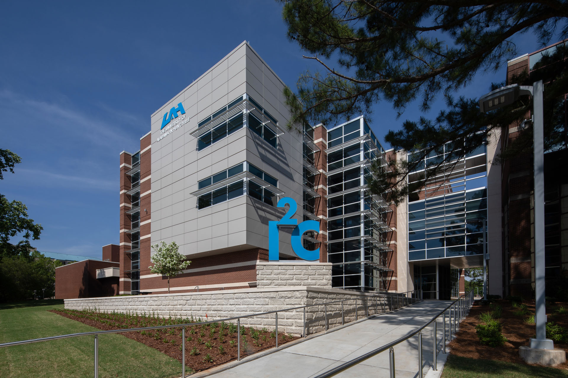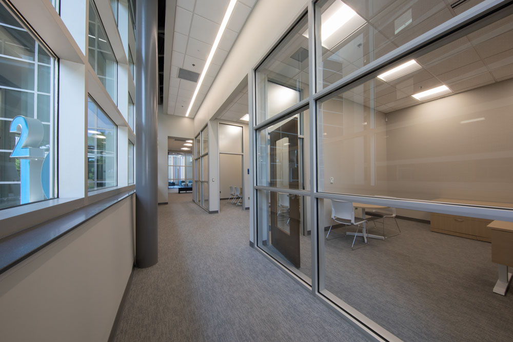 The new three-story 46,650 square foot building was constructed between UAH’s College of Business building and Wilson Hall. The new building connects with the College of Business via elevated walkways on the second and third floors. This proved to be a very challenging project due to the confined work area, limited laydown area, and ongoing campus activities.