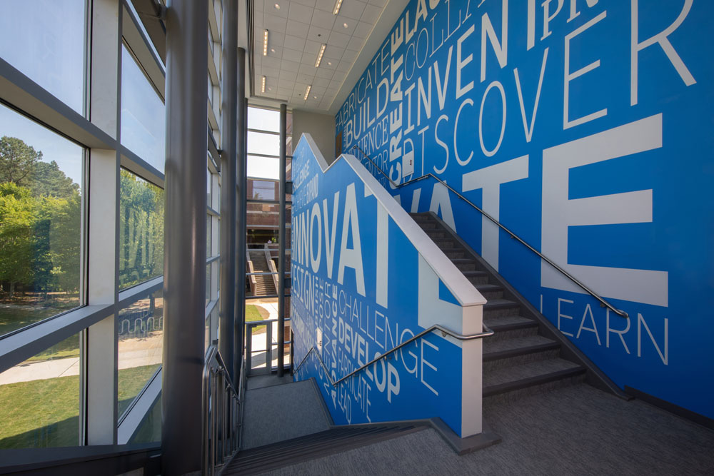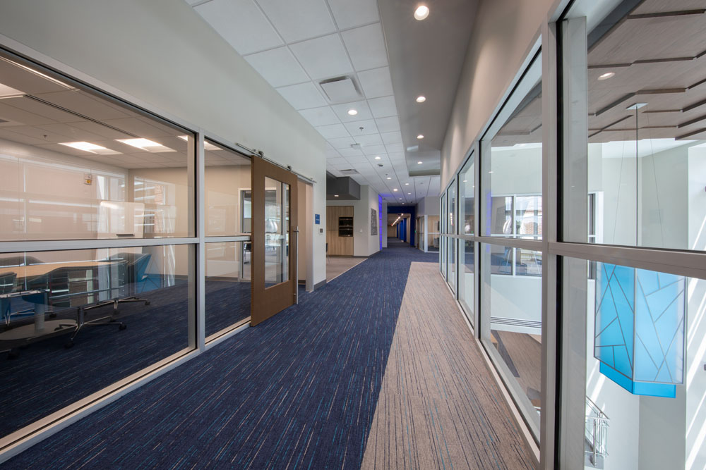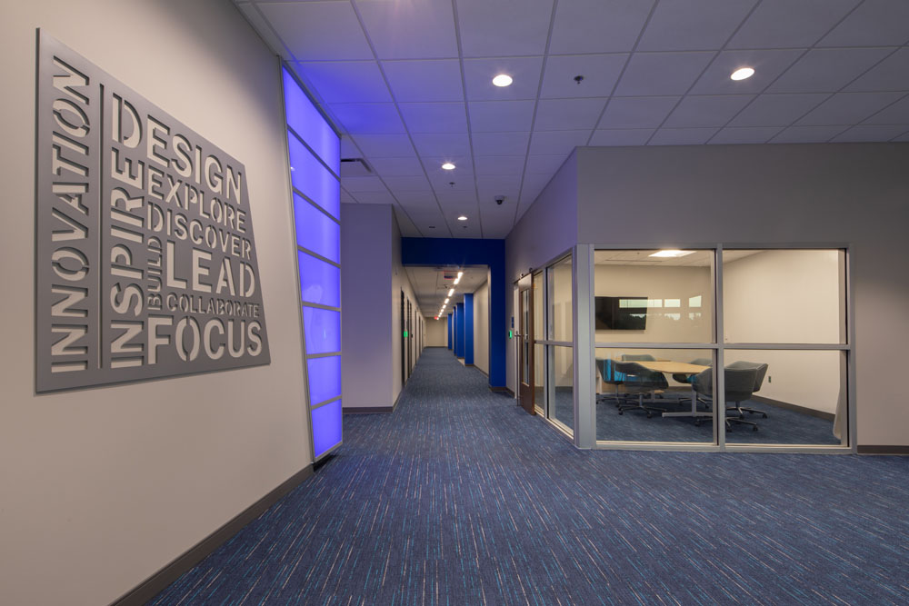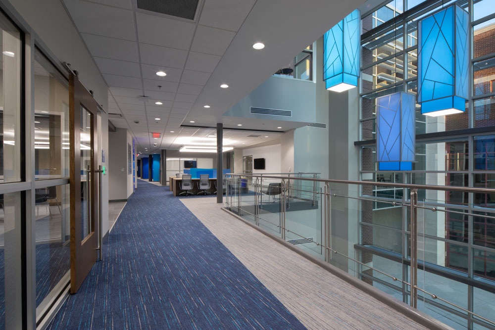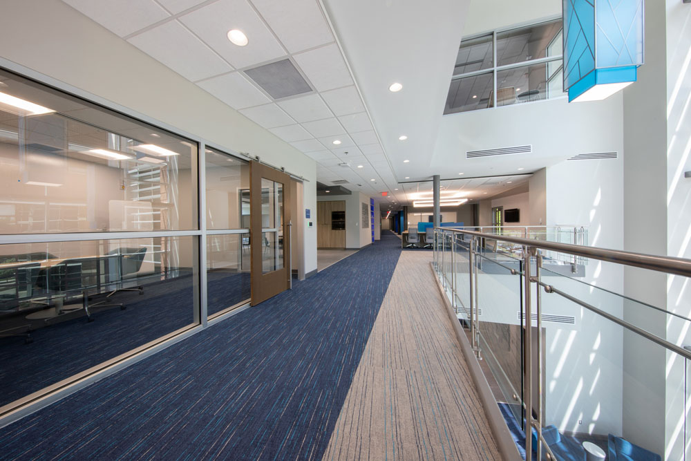 The new three-story 46,650 square foot building was constructed between UAH’s College of Business building and Wilson Hall. The new building connects with the College of Business via elevated walkways on the second and third floors. This proved to be a very challenging project due to the confined work area, limited laydown area, and ongoing campus activities.
