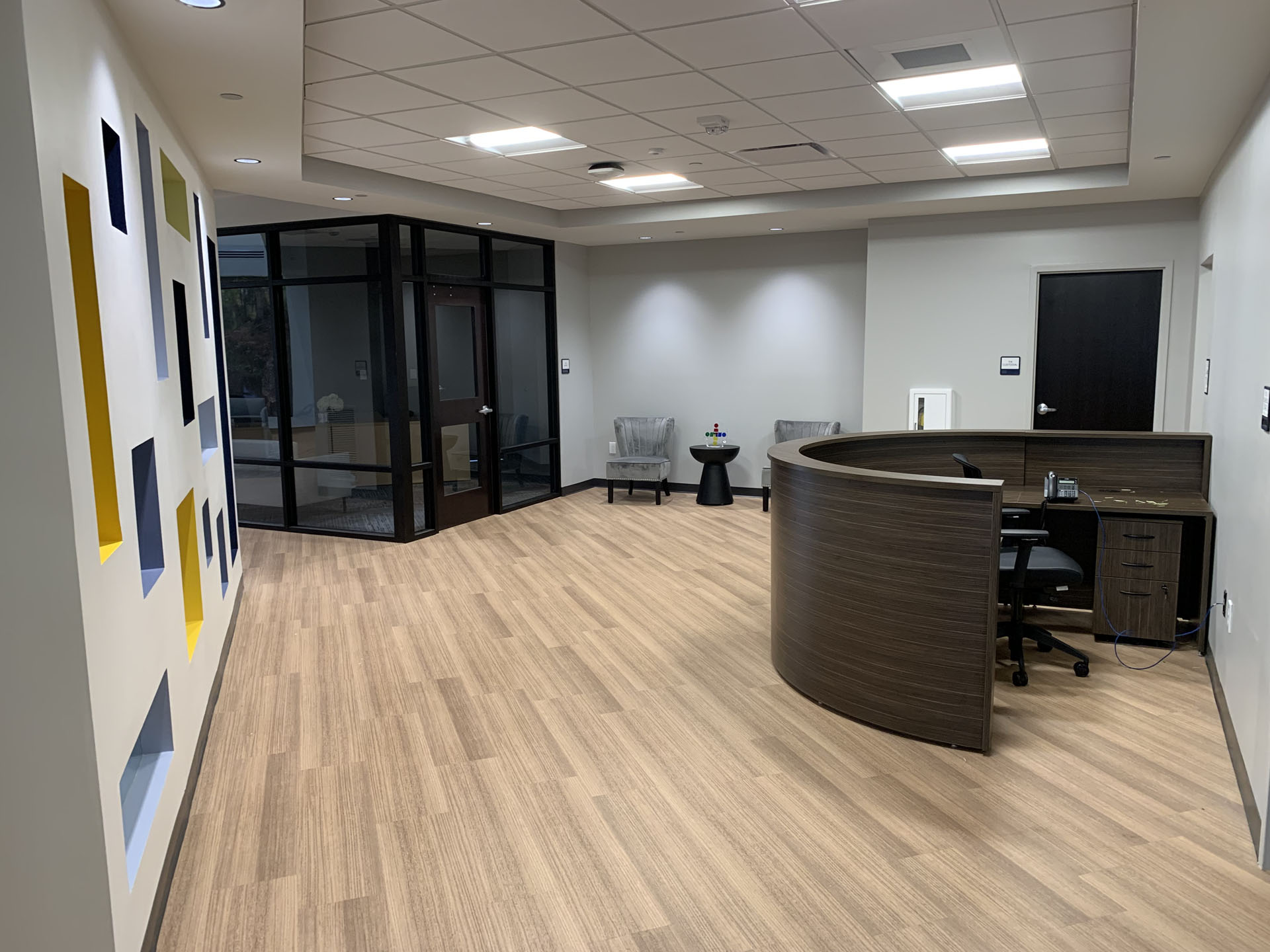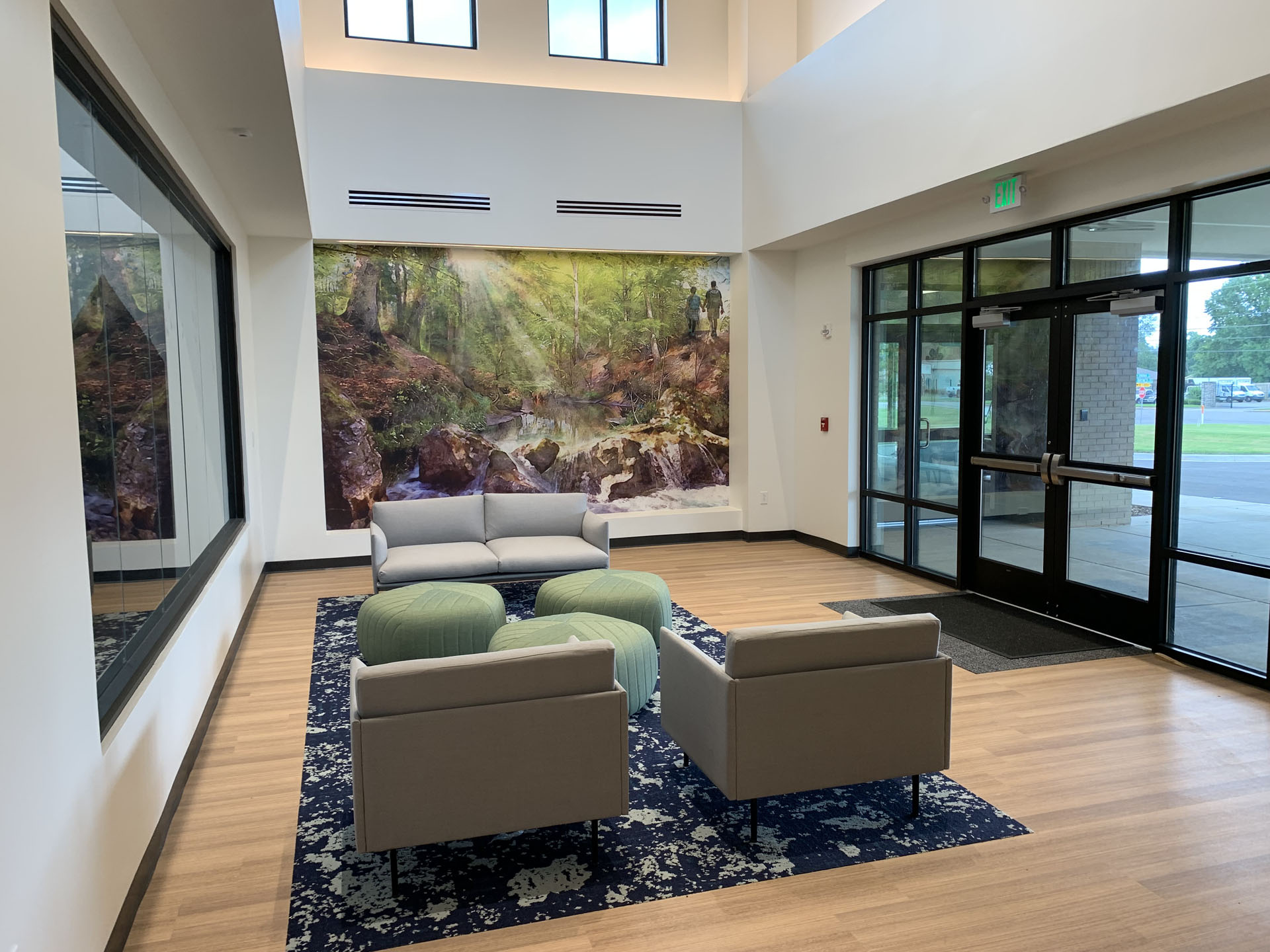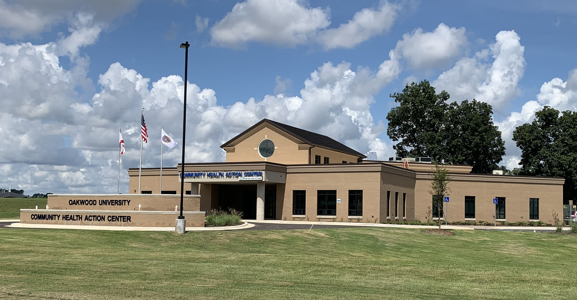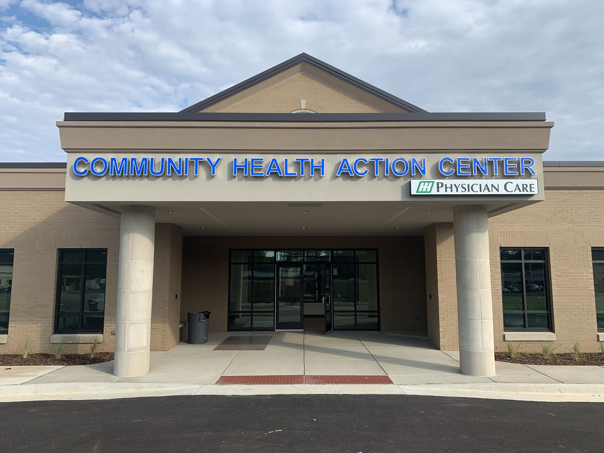 This new Community Health Action Center is a single story building with steel framing, metal stud infill, parking lots, vehicular site access, site utilities, and landscaping. The building is clad with brick and EIFS, with both storefront and clad windows.