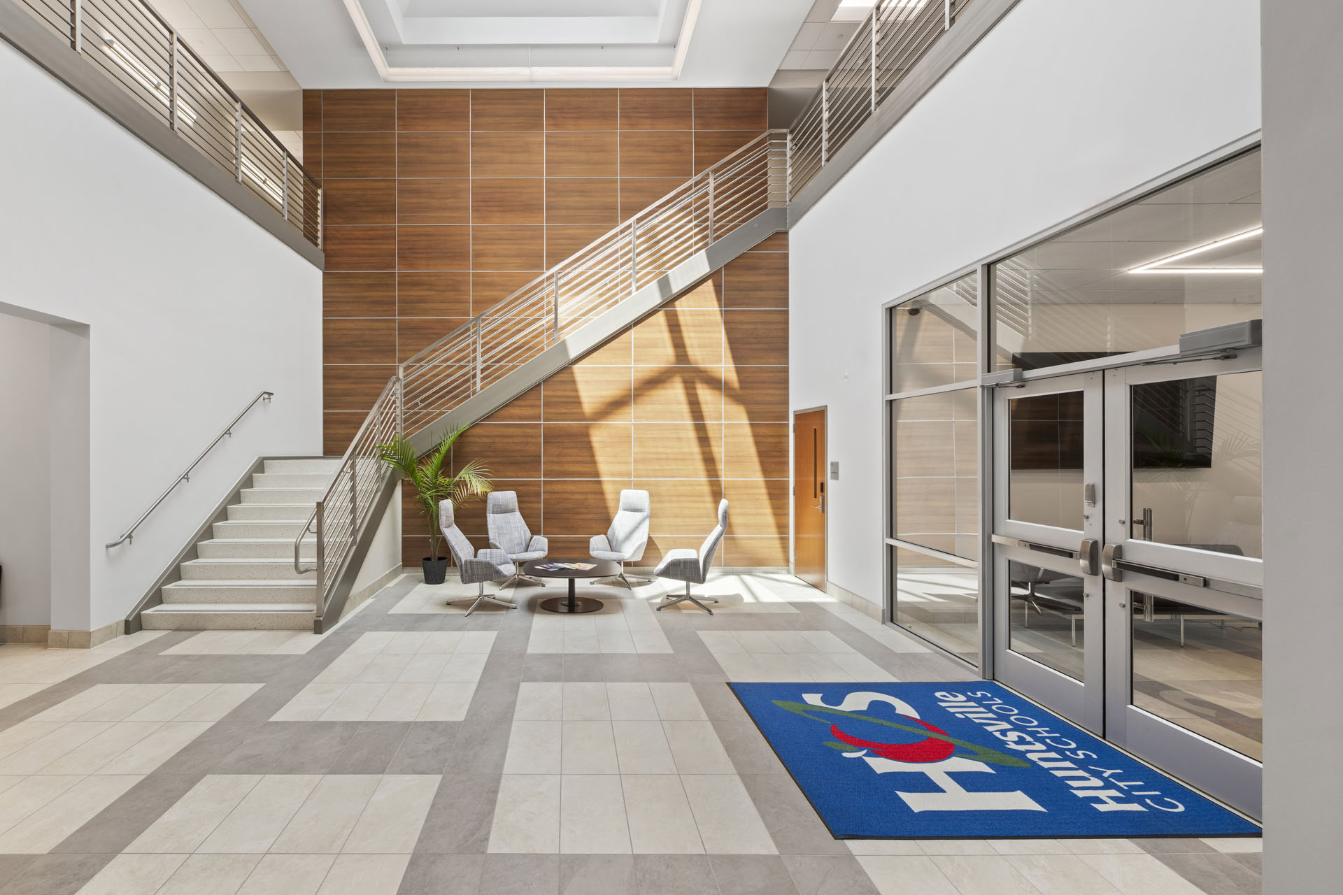 Comprised of two separate buildings: a 40,000 square foot Central Office for Huntsville City Schools housing 150 staff with collaborative, contemporary office space and boardrooms, and an 81,000 square foot Center for Technology serving 600 students with modern workforce programs.